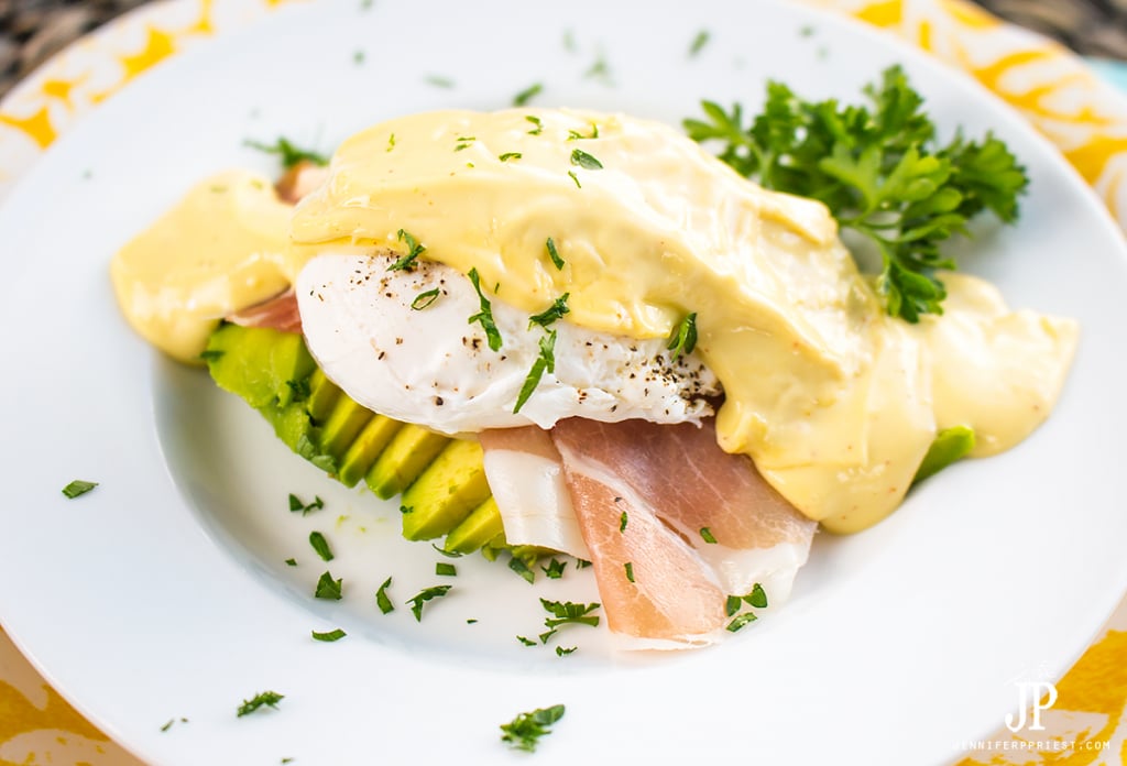 We've updated one of my favorite breakfasts, Eggs Benedict, to be more paleo compliant, gluten-free, and extra delicious with a homemade avocado hollandaise sauce and thin sliced avocado in place of the traditional muffin. This Avocado Eggs Benedict recipe is ready in minutes with our blender hollandaise sauce, serrano ham, and a poached egg.