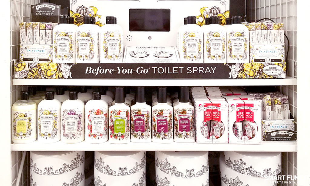 - Poo~Pourri “Before-You-Goยฎ Toilet Spray“ to display with the sign