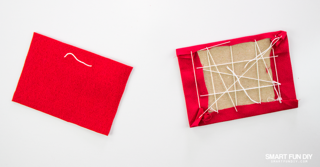 - 9″ x 12″ sheet of red felt (trim to fit finished cross-stitch project)