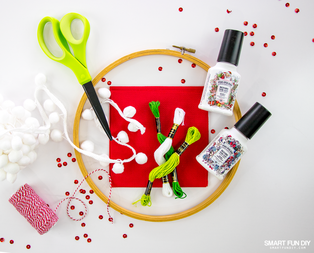Holiday guests will be here before you know it and there's one thing that we all know happens around the holidays but nobody wants to talk about. We've all experienced that worry when you're at a holiday party or at the relatives' house and all of a sudden you've got to go. This year you can be prepared whether you're the host or the guest. You gotta get Poo~Pourri! I've created a really fun way to let your guests know what to do when they want to leave the porcelain sleigh leaving smelling better than they found it: a DIY “jingle smells” cross stitch sign for the throne room! Keep reading to see how to make this sign, grab the free naughty cross stitch patterns, and learn more about how Poo~Pourri can make this holiday season the best smelling ever.