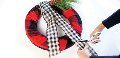 This similar DIY plaid scarf wreath design from Command Brand by 3M features a foam base instead of wire.