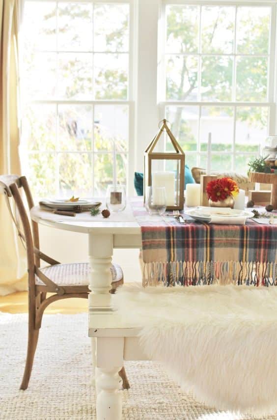 Aย scarf works great as a simple table runner. This scarf table runner idea from City Farmhouse is one of six ideas Jen O'Brien shares for using scarves … and with every idea, you can totally wear the scarf again later.